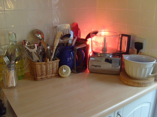 My poor long suffering husand. As soon as I stopped working, I took over the kitchen, and boy did I take over. My modern, minimalist husband has lost an entire room of the house to my vast amounts of frippery. And worse, I (nicely) twist his arm into making bits of furniture to accommodate my bric-a-brac. Bless him...